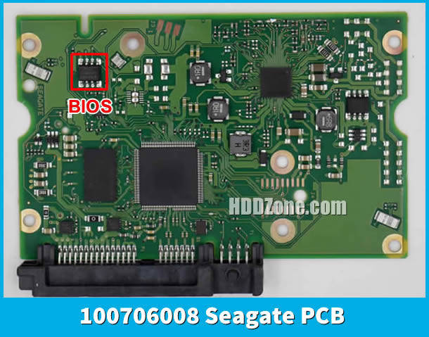 Ubicación del chip del BIOS en el Seagate 100706008 placa lógica disco duro: